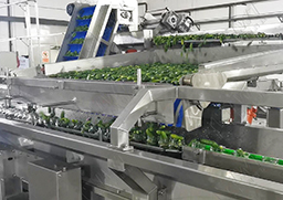使用自動(dòng)輸送帶將處理好的蔬菜送入包裝環(huán)節(jié)。