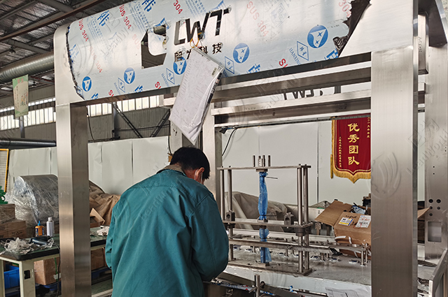 這臺(tái)目前正在組裝中的設(shè)備是我們的活塞灌裝機(jī),該灌裝機(jī)將被用來灌裝番茄醬。設(shè)備采用304不銹鋼,不僅保證了設(shè)備外觀干凈美觀,也方便設(shè)備清洗和保養(yǎng)。