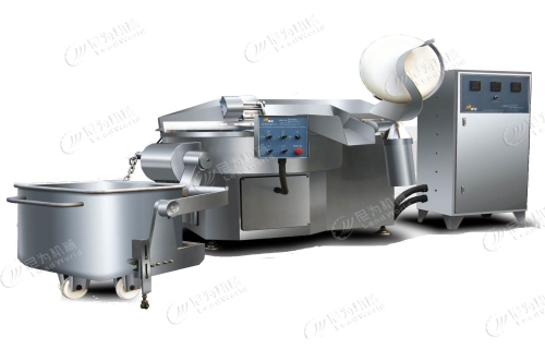首先,將剔骨處理過(guò)的新鮮的牛肉用斬拌機(jī)切分成適當(dāng)大小,清洗后再放入預(yù)煮機(jī)中燜煮。