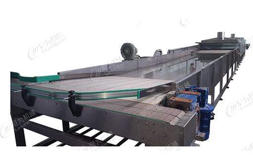 把處理好的原果一起倒入流槽內(nèi)沖洗,洗凈后立即撈出,以免清洗時(shí)間過長(zhǎng),可溶性果糖果酸溶出。