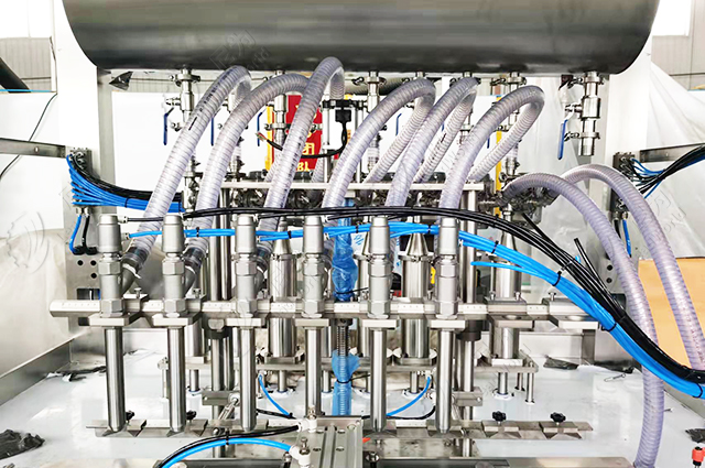 這臺(tái)設(shè)備是8頭灌裝機(jī),一般我們的灌裝頭數(shù)量視產(chǎn)量而定,直線式的建議4~12頭,否則灌裝速度反而達(dá)不到預(yù)期。
