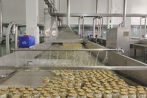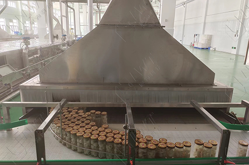 水果罐頭、果醬罐頭常用巴氏滾杠殺菌機(jī)來滅菌,殺菌槽內(nèi)的熱水溫度控制在85-95℃之間,滾杠可以使產(chǎn)品均勻受熱,起到更好地殺菌效果。殺菌后自動(dòng)再進(jìn)入冷水段使產(chǎn)品降溫,這樣不僅可以給產(chǎn)品護(hù)色,還能保持食物的口感。