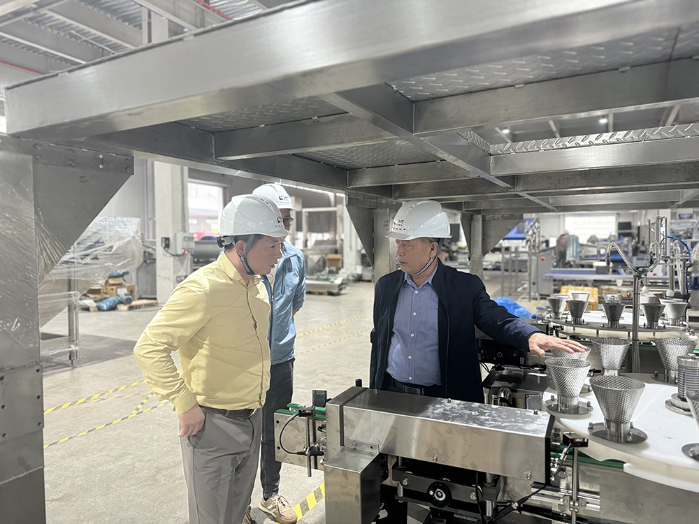 在現(xiàn)代化生產(chǎn)車間,劉有千理事長(zhǎng)見證了尼為智能的高效運(yùn)作與精工工藝,對(duì)尼為在提升生產(chǎn)效率、降低能耗成本的顯著成效印象深刻。座談中,劉有千理事長(zhǎng)肯定了尼為智能對(duì)罐頭工業(yè)的貢獻(xiàn),并強(qiáng)調(diào)智能制造對(duì)產(chǎn)業(yè)升級(jí)的重要性。他表示,中國罐頭工業(yè)協(xié)會(huì)將持續(xù)支持尼為智能等優(yōu)秀企業(yè),促進(jìn)業(yè)內(nèi)交流合作。